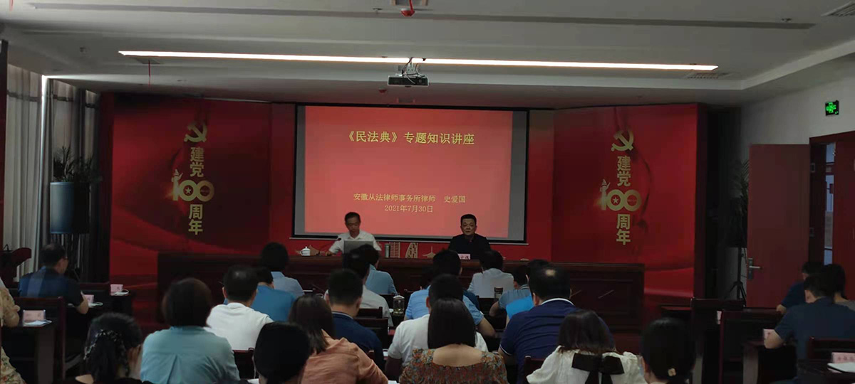 讲座邀请集团公司法律顾问、安徽从法律师事务所律师史爱国来公司为全体干部员工进行民法典宣讲。