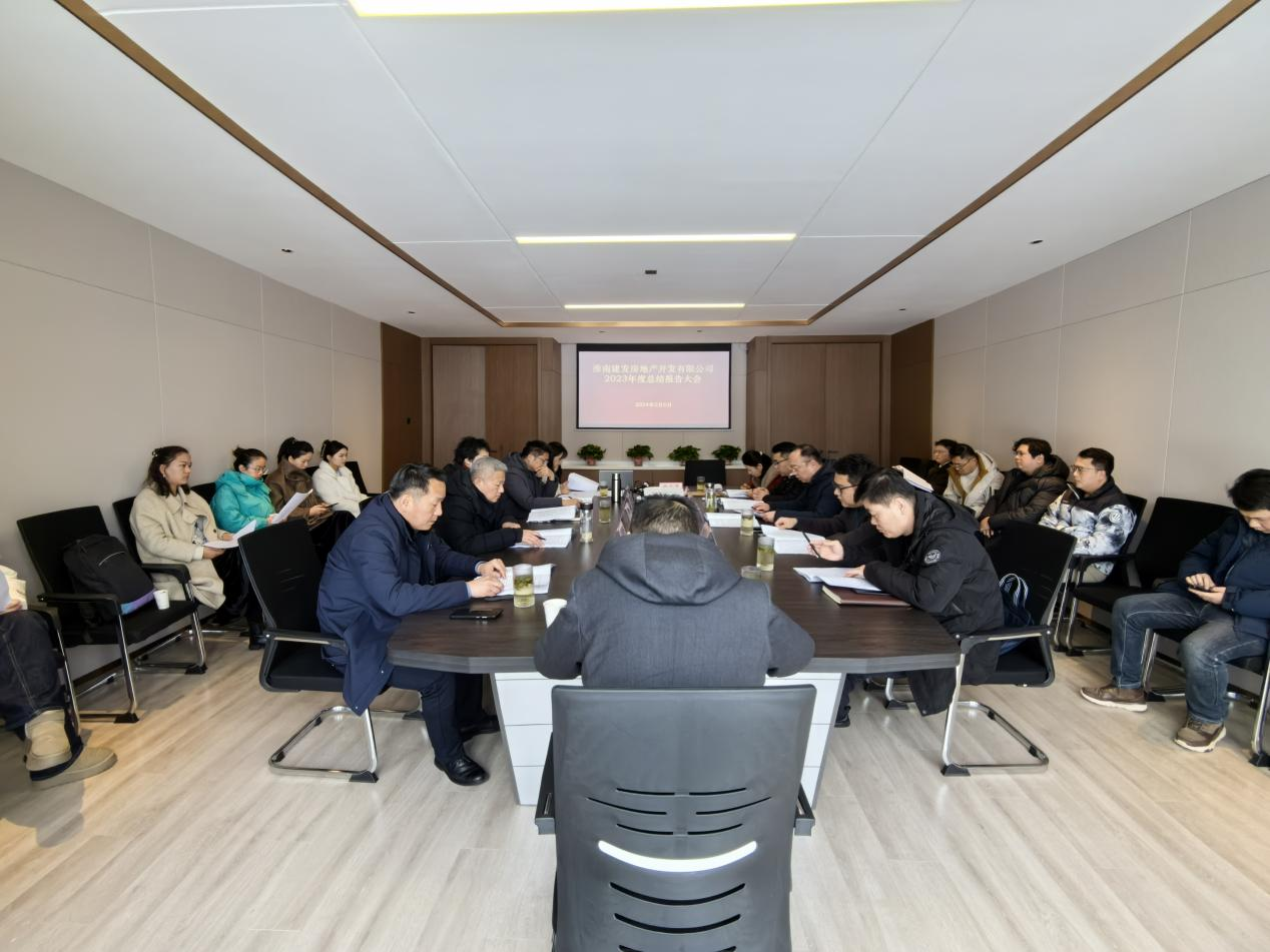 为总结经验查找不足,更好地做好2024年各项工作,助力公司高质量发展,2024年2月6日下午,建发房地产公司在如意庭营销中心2楼会议室召开2023年度总结报告大会,集团公司副总经理陈彪莅临出席,公司董事长兼总经理侯立新主持会议,公司董事、监事及财务总监列席会议,公司全体员工参加会议。