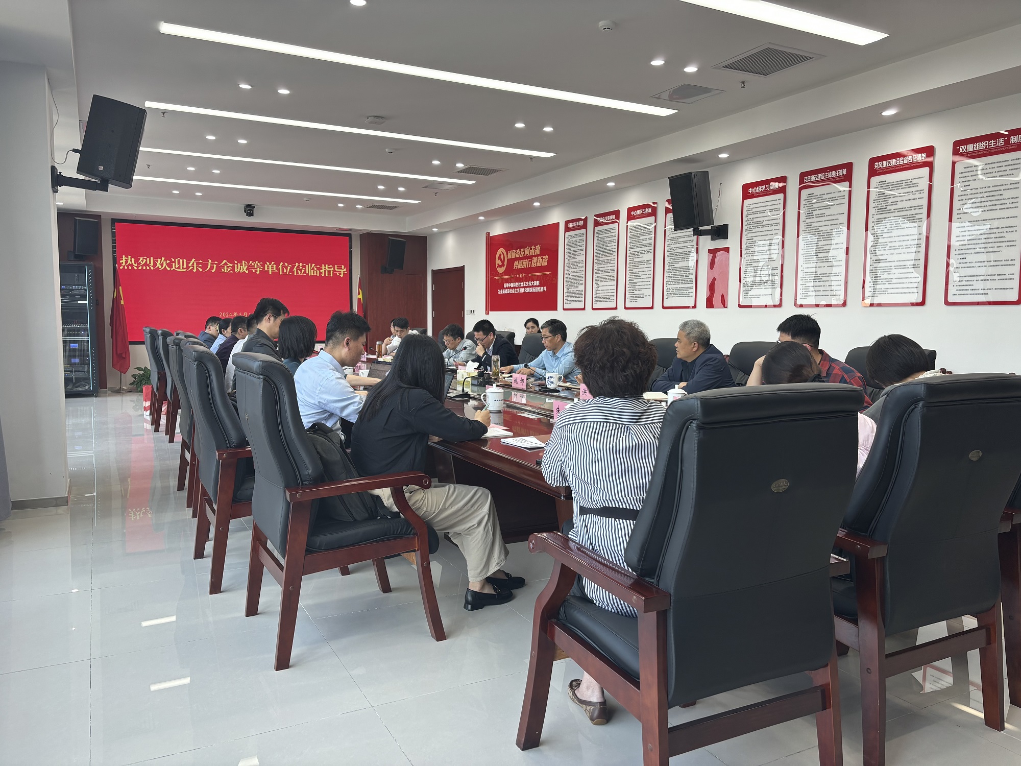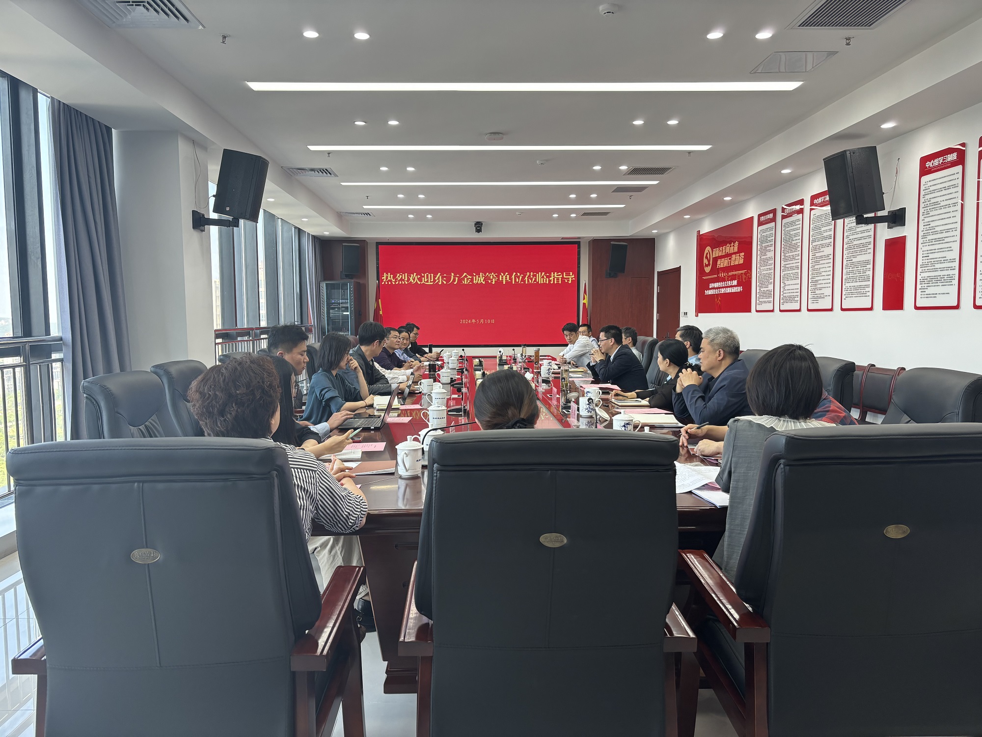 2024年5月10日下午,东方金诚评级公司安徽分公司总经理黄天祺、北京兴昌华会计师事务所首席合伙人汪和俊、和汛资产评估公司总经理王林、国金证券债券二部董事总经理李磊一行到访bv1946伟德官网,就淮南平台公司信用评级提升及市场化融资事宜进行座谈交流,市财政局(国资委)党委书记、局长唐兵主持接待,